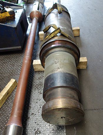Dennoch ist der Betrieb offen für den Blick über den eigenen Tellerrand und geht deshalb auch ungewöhnliche Wege, wenn es dem Ziel der optimalen Kundenlösung dient. So auch im Fall von zwei Richtachsen, die im Knüppelwalzwerk der ArcelorMittal Hochfeld GmbH in Duisburg ihren harten Dienst leisten – jede drei Tonnen schwer, 3.500 Millimeter lang und an der dicksten Stelle mit einem Durchmesser von 580 Millimetern. Sie waren trotz des verwendeten hochvergüteten Werkstoffs 34CrNiMo6 stark verschlissen. Das Walzwerk beauftragte Schmidtke & Sohn zunächst nur mit der kompletten Instandsetzung einer Achse – inklusive De- und Remontage. So galt es, insgesamt zwölf Einzelkomponenten – Achse mit Antriebshülse, Ritzelwelle, komplette Lagerung und axiale Verschiebung – zu reparieren. Eine besondere Herausforderung bedeutete dabei der starke Verschleiß der Achse an der Stelle, wo das Richtrad aufsitzt und die Kräfte folglich am stärksten wirken. Neuanfertigung war aus Kosten- und Zeitgründen keine Option. Da die Achse stoßartig belastet wird, fiel auch thermisches Beschichten wegen des Abplatzrisikos aus. Eine kostengünstige Reparatur konnte nur durch Schweißen dieser Fläche erreicht werden. Durch den erhöhten Kohlenstoffgehalt ist der Werkstoff jedoch schwierig zu schweißen, da er zu Rissbildung oder wie in diesem Fall zu unerwünschter Aufhärtung neigt. Das war auch der Grund für die Beauftragung des Dinslakener Unternehmens durch das Walzwerk. Die Achse bei Schmidtke & Sohn war die letzte im Walzwerk verfügbare, entsprechend groß waren Bedarf und Zeitnot. Der Traditionsbetrieb sagte eine Reparatur binnen zwei Monaten zu – angesichts der Komplexität der Aufgabenstellung und des anspruchsvollen Werkstoffs ein ambitioniertes Versprechen. Die Umsetzung erfolgte durch engmaschig im Unternehmen abgestimmte Bearbeitungsprozesse. So wurde das 440 x 4 Millimeter große Trapezgewinde nachgedreht und auf Maß gebracht. Außerdem wurden das Druck-Distanzstück inklusive einer 472 Millimeter-Bohrung erneuert, eine Reparaturhülse für den verschlissenen Sitz des Wellendichtrings nach Kundenwunsch gehärtet und der Richtwalzenkeil neu angefertigt. Hinzu kamen die vorbereitenden Arbeiten an der Richtachse: Vordrehen der Welle auf ein glattes Maß zum Schweißen und Vorfräsen der Passfedernuten.